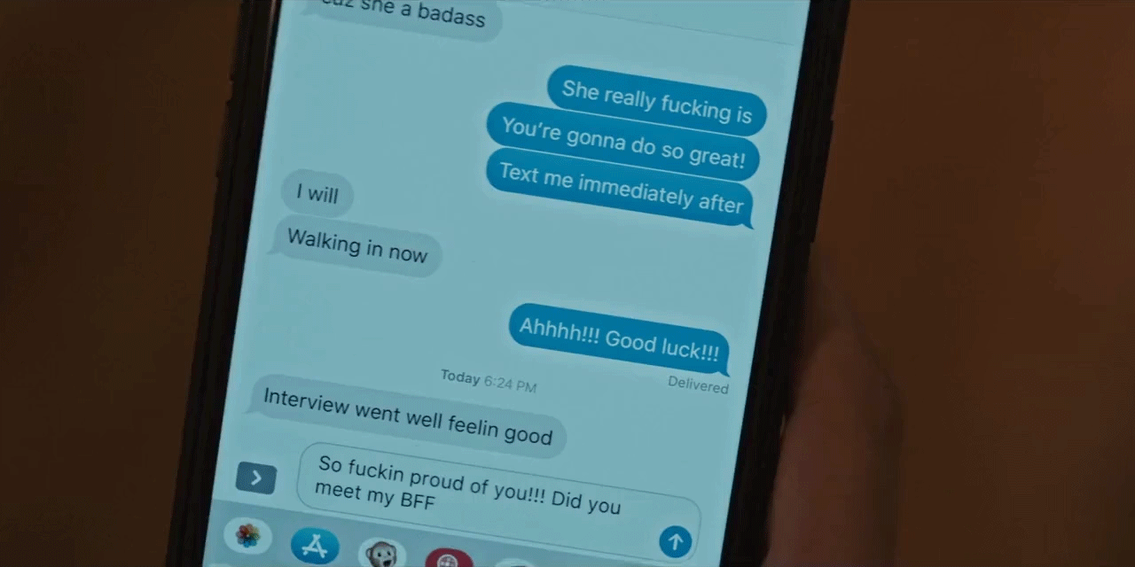 There was a huge amount of texting between characters, including group chats, one-on-one chats and seeing incoming and outgoing texts. We mimicked the function of iMessage as accurately as possible to ensure the highest level of realism, including the "Delivered" pop-up on sent messages and the typing dots for when someone else was typing.