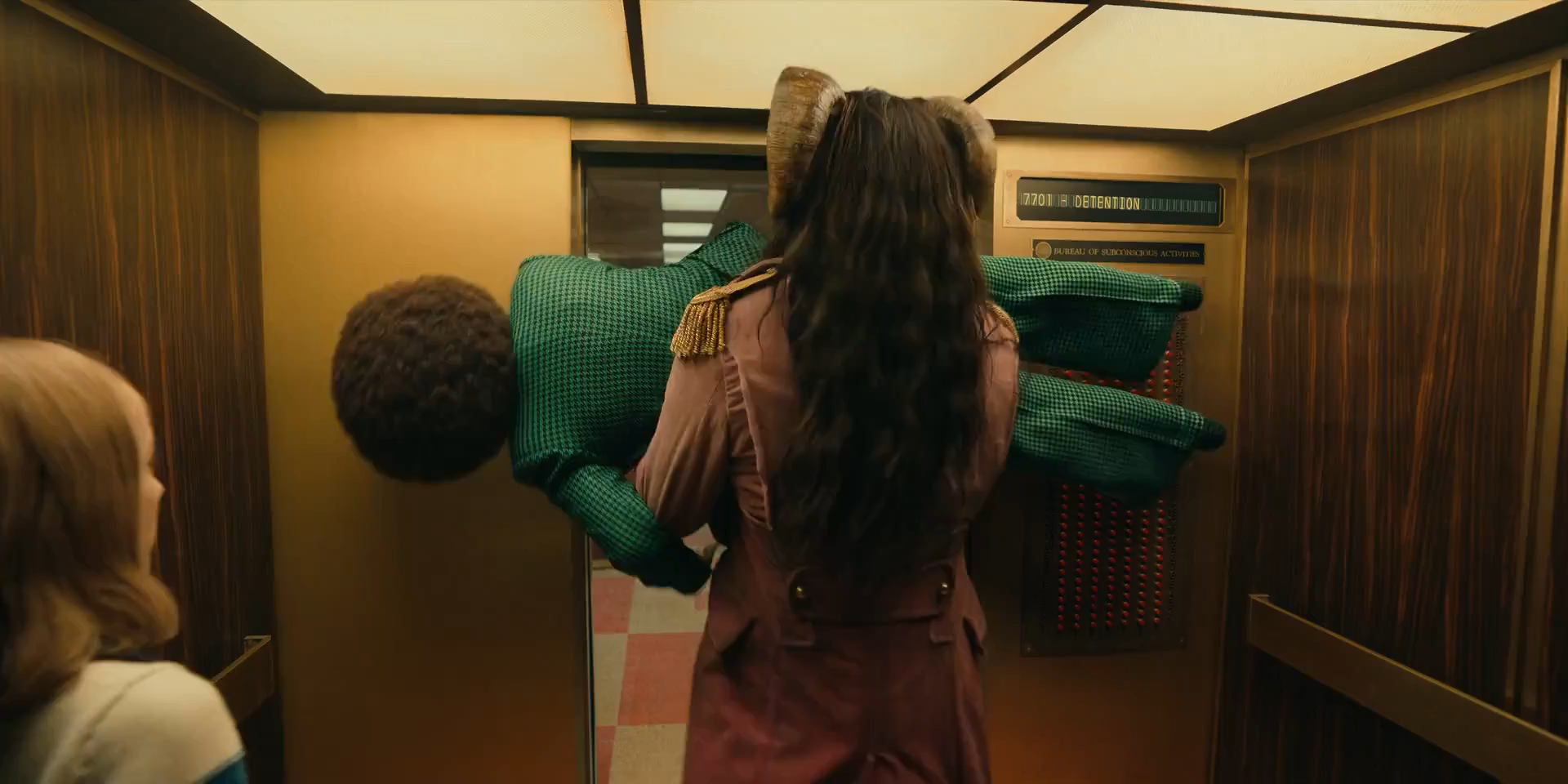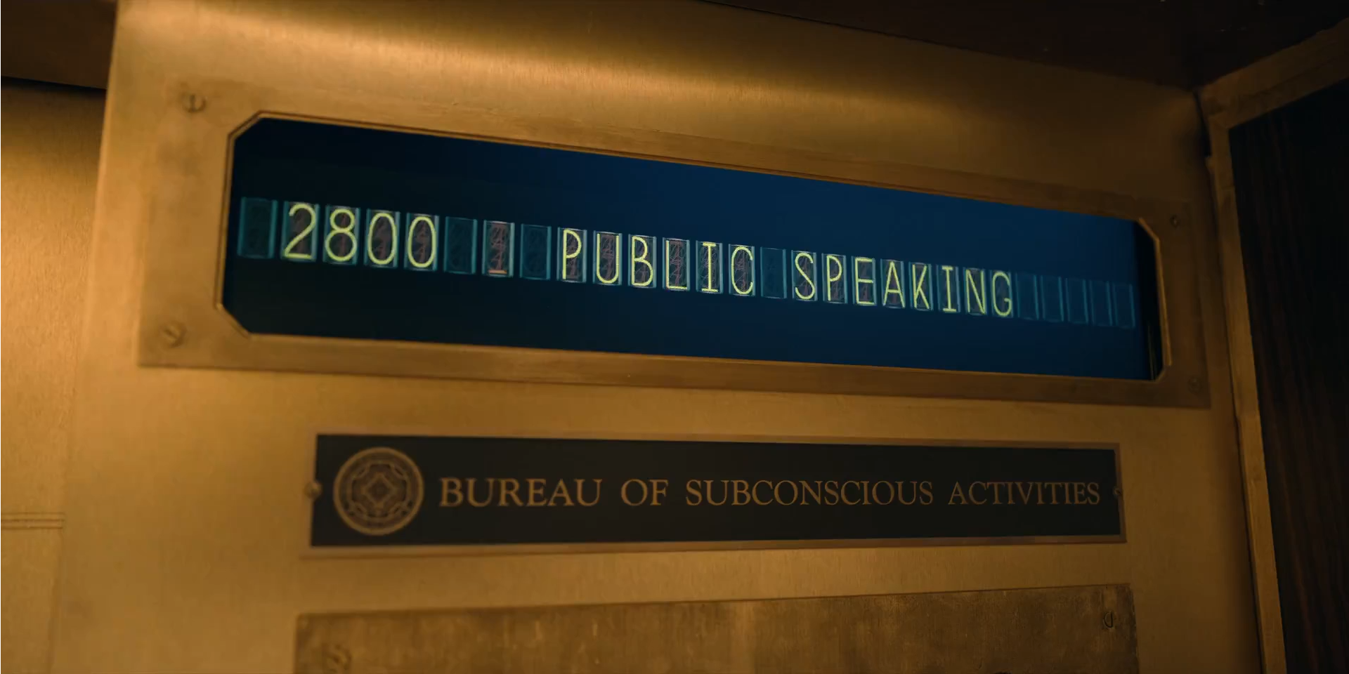 The display for the elevator scrolls through an assortment of 'dream floors' at the Bureau of Subconscious Activities (BOSA).