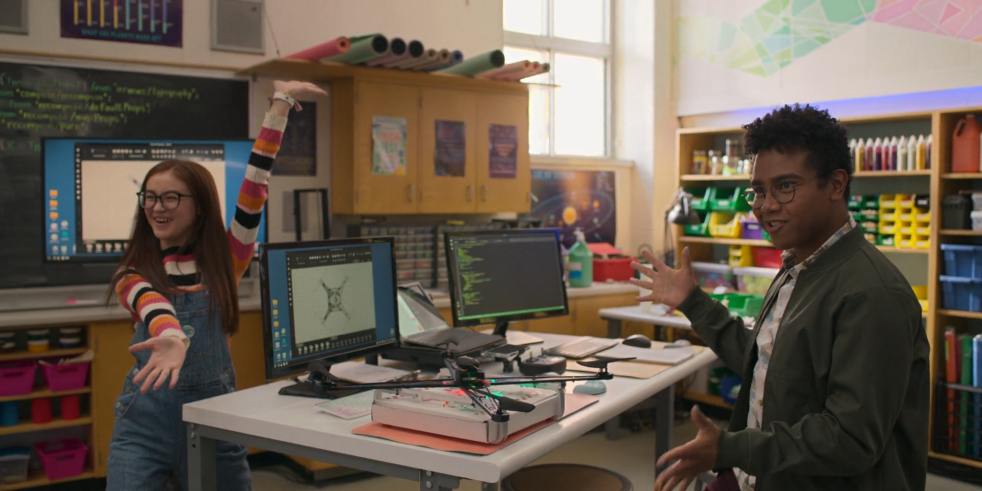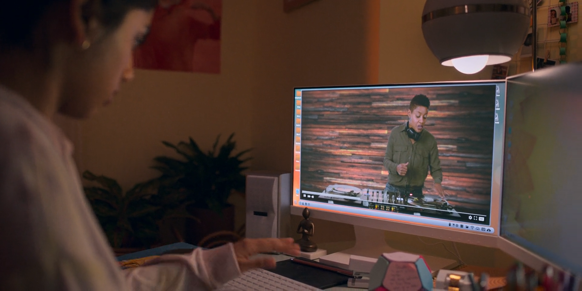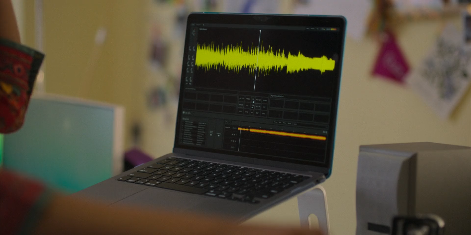 Rhea and Max bond as she showcases what she's been putting together on this music editing program. I attempted to build the music editing program with a high level of realism to ensure that it wouldn't distract from the narrative of the scene.