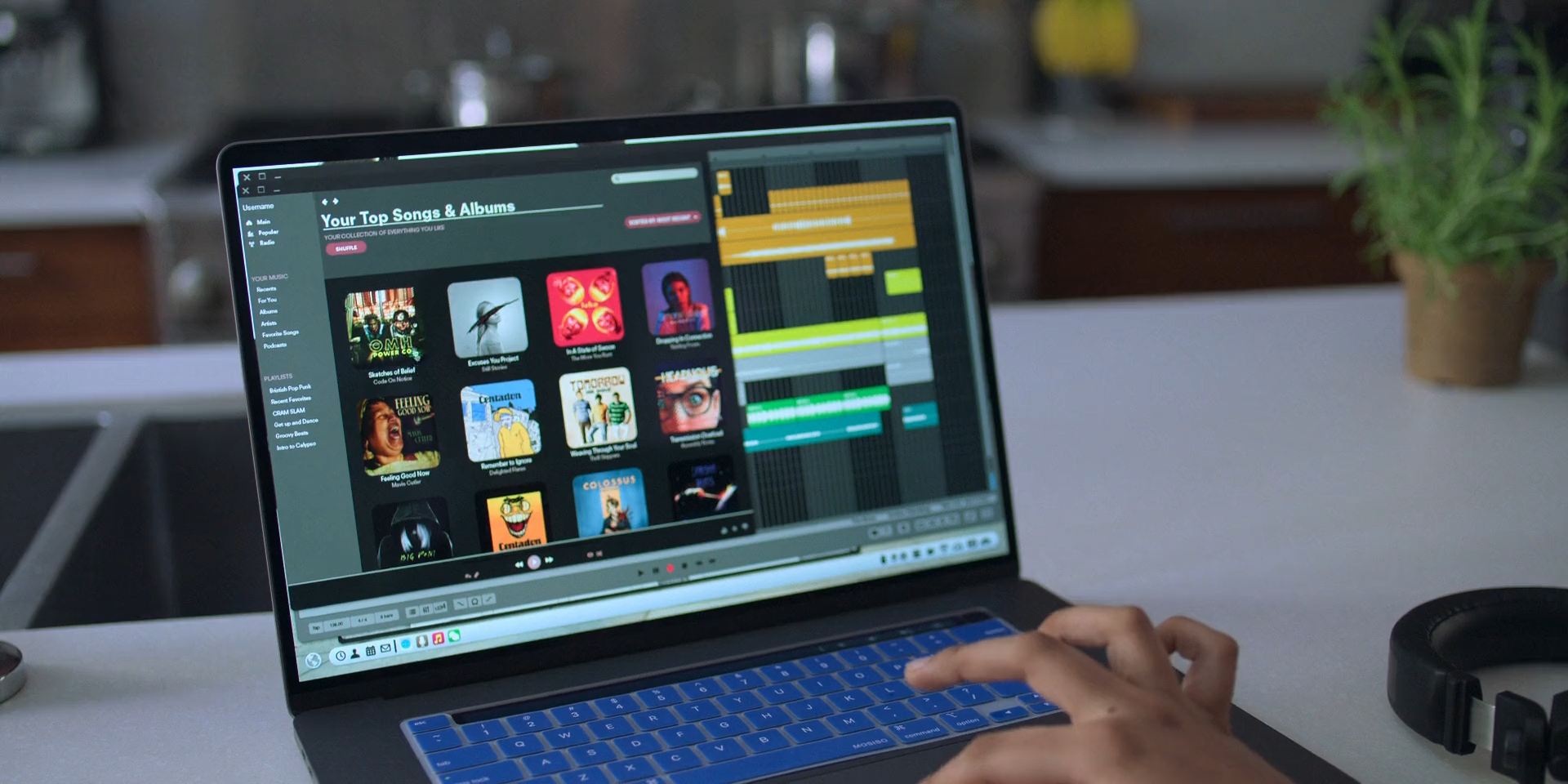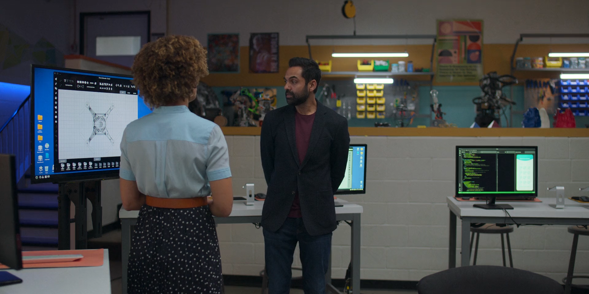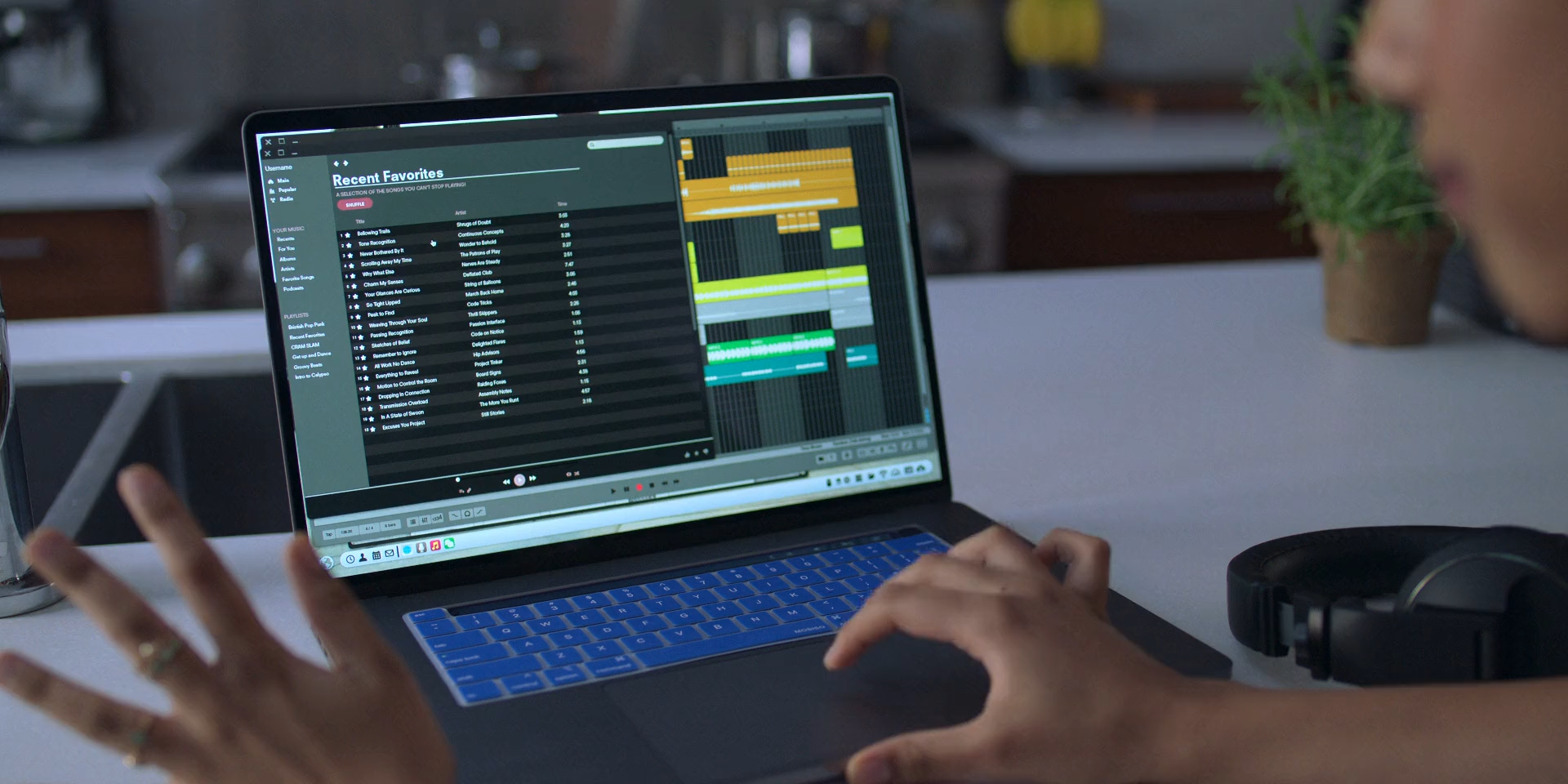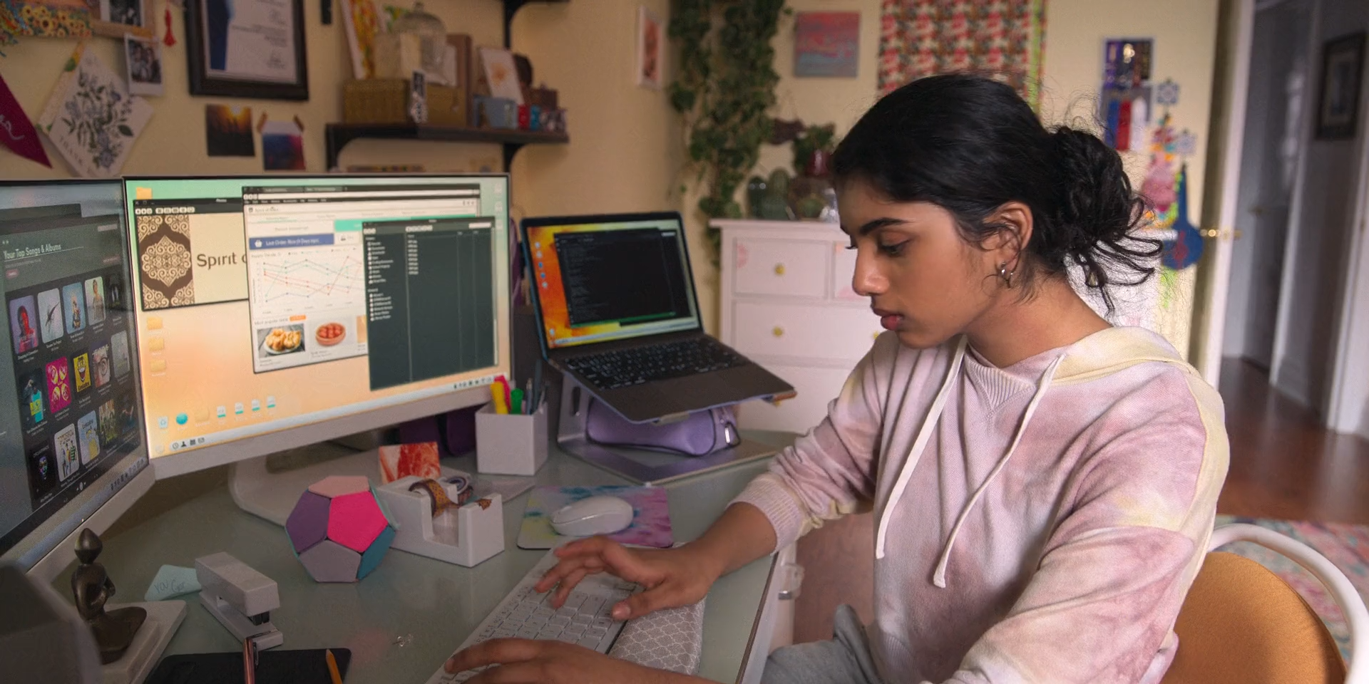 Rhea and Max bond as she showcases what she's been putting together on this music editing program. I attempted to build the music editing program with a high level of realism to ensure that it wouldn't distract from the narrative of the scene.