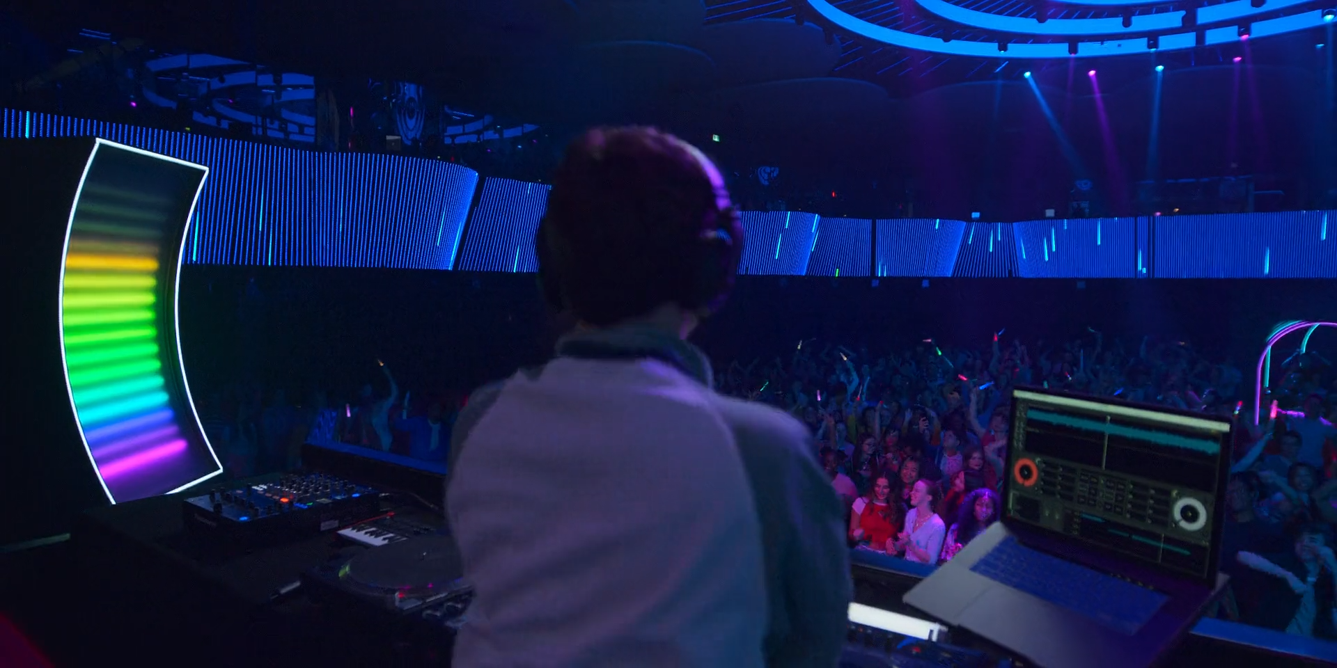 I worked closely with the composer to ensure the on-set DJ-ing programs I created visually matched up with the music written for the film to provide realistic references for the actors.