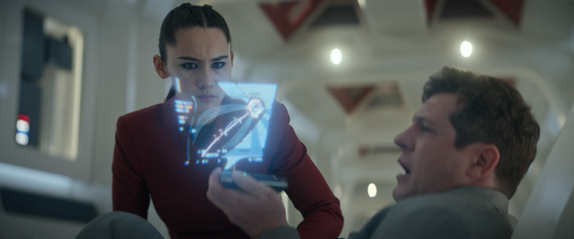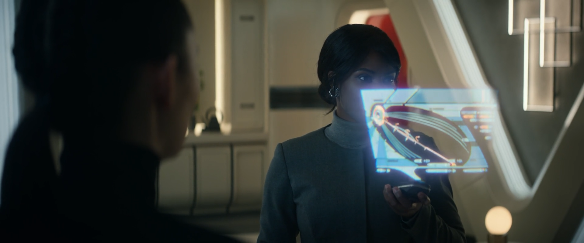 Holograms don't appear often in Strange New Worlds (Captain Pike canonically dislikes them!), but occasionally, people from the future or alien races use them. I was lucky enough to design and animate the holograms for the Department of Temporal Investigations, based on the UI of previous Star Trek series. I also designed an ornate hologram for an assistant on the planet Majalis.