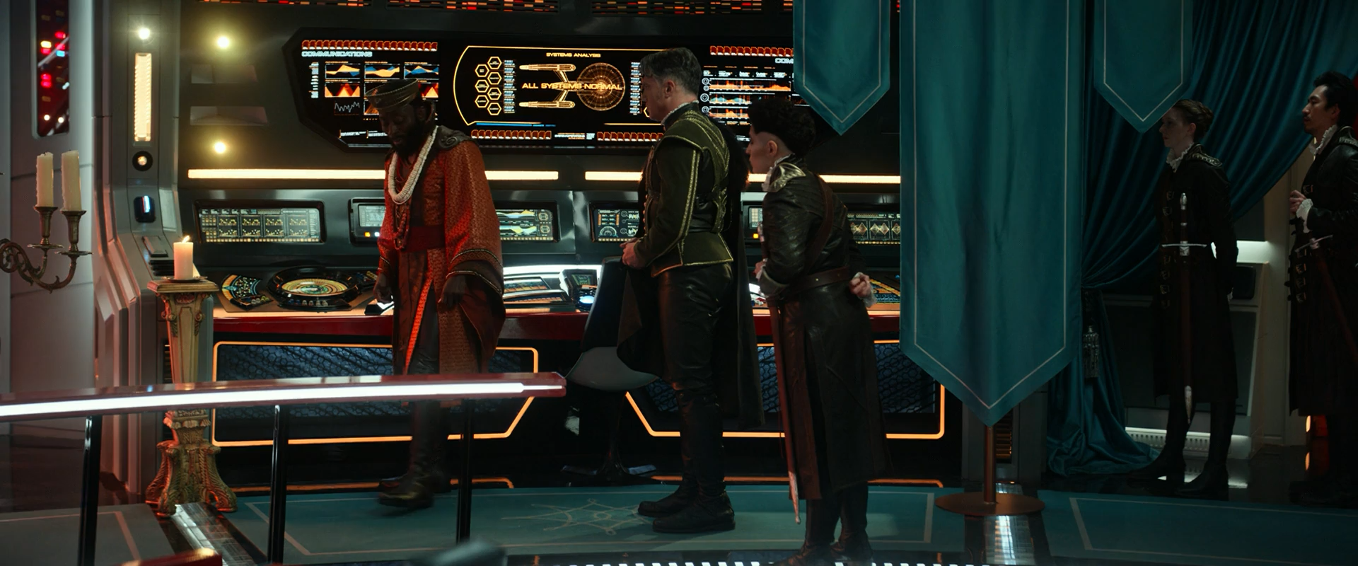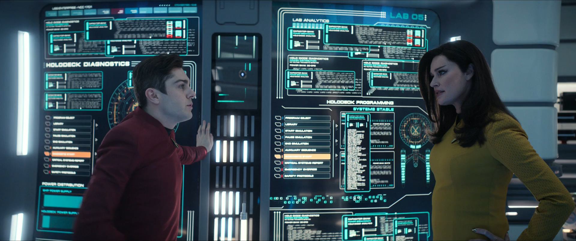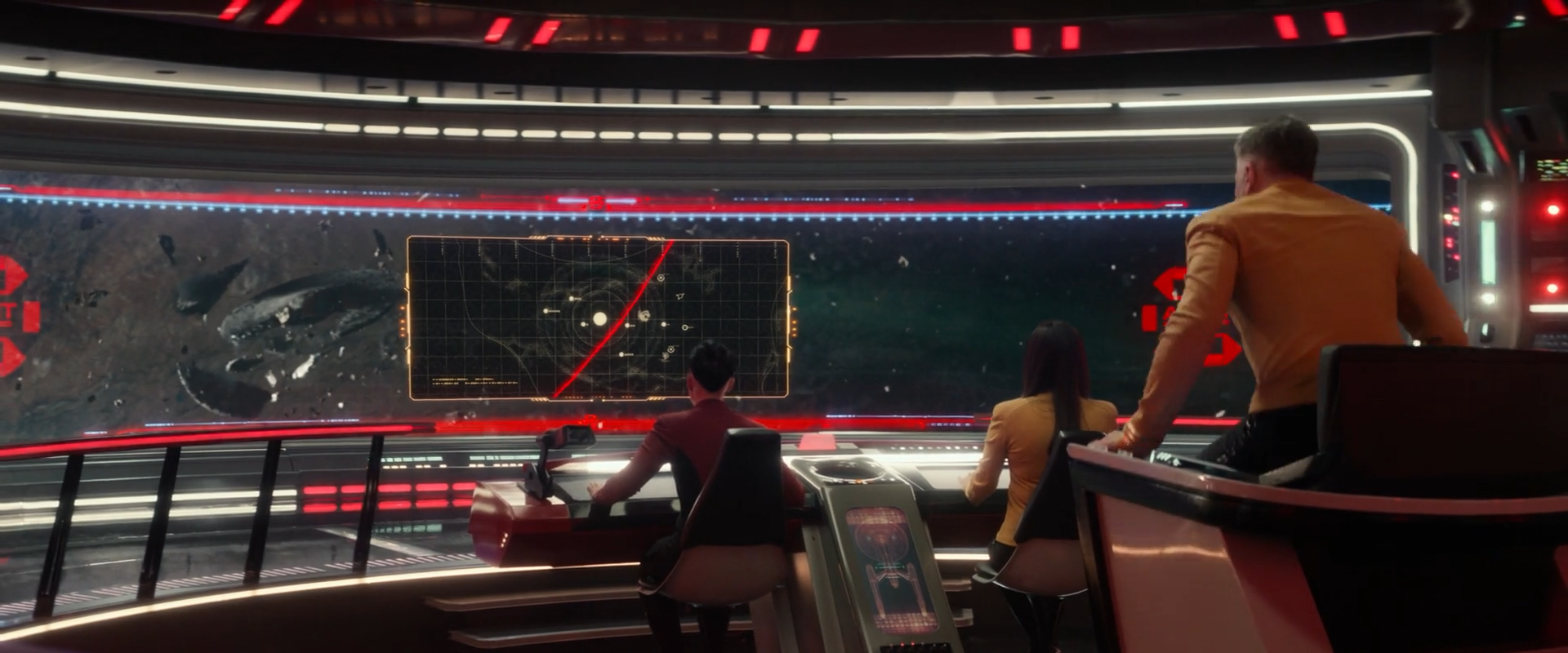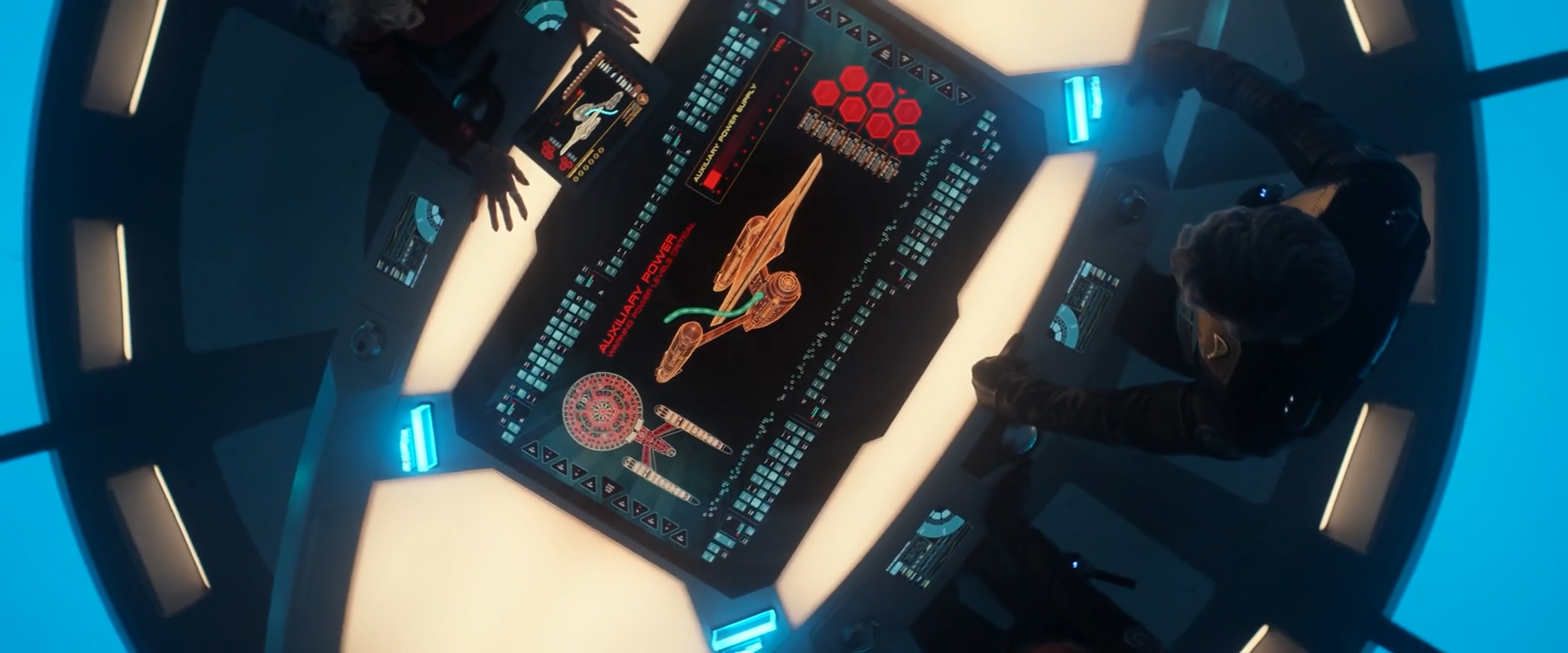 The bridge is the command center of the Enterprise, where the commanding officers supervise all the ship's operations. Throughout the series, I've gotten to design some cool hero graphics that play on the Bridge like the Systems Analysis and the Gorn Demarcation Map.